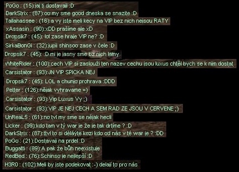 - Válka říší Aréna neboli jak se dá také jinak nazvat " invaze cechu VIP " proběhla 8.11.2011. Screeny nafocené během průběhu války, myslím mluví za vše. Chtěli bychom poděkovat i za podporu našich věrných fanoušků, kteří nás při válce podporovali. Některé příspěvky k cechu jsou zde k vidění také.